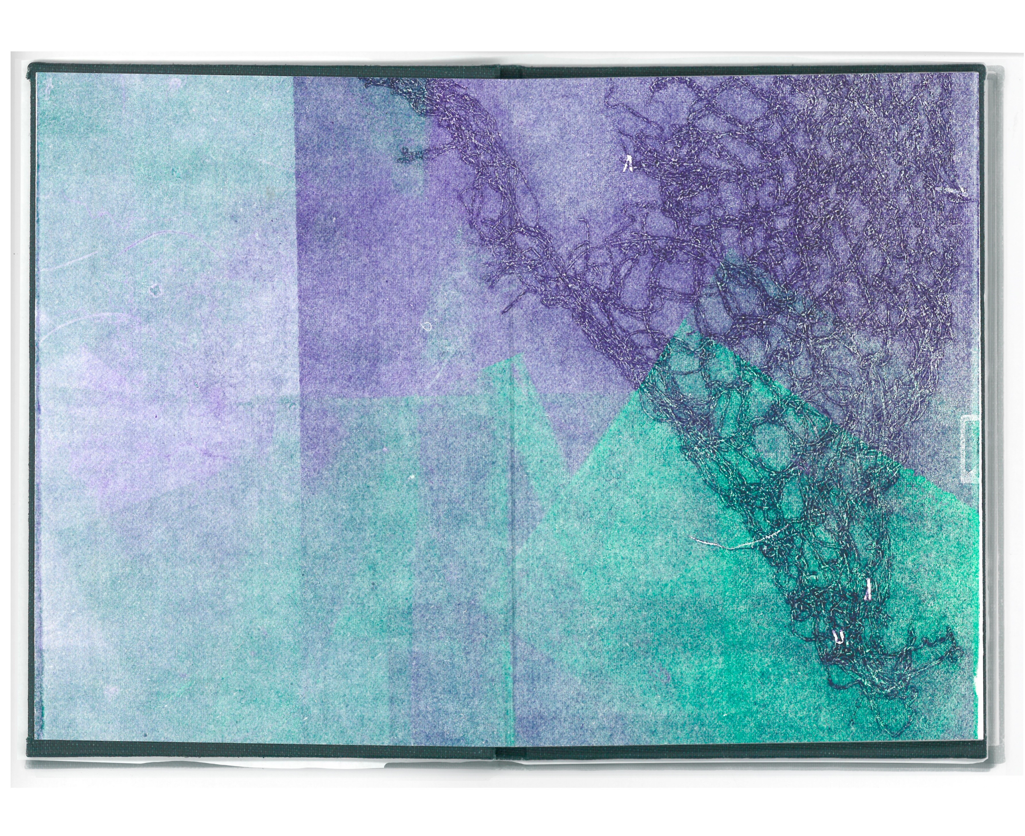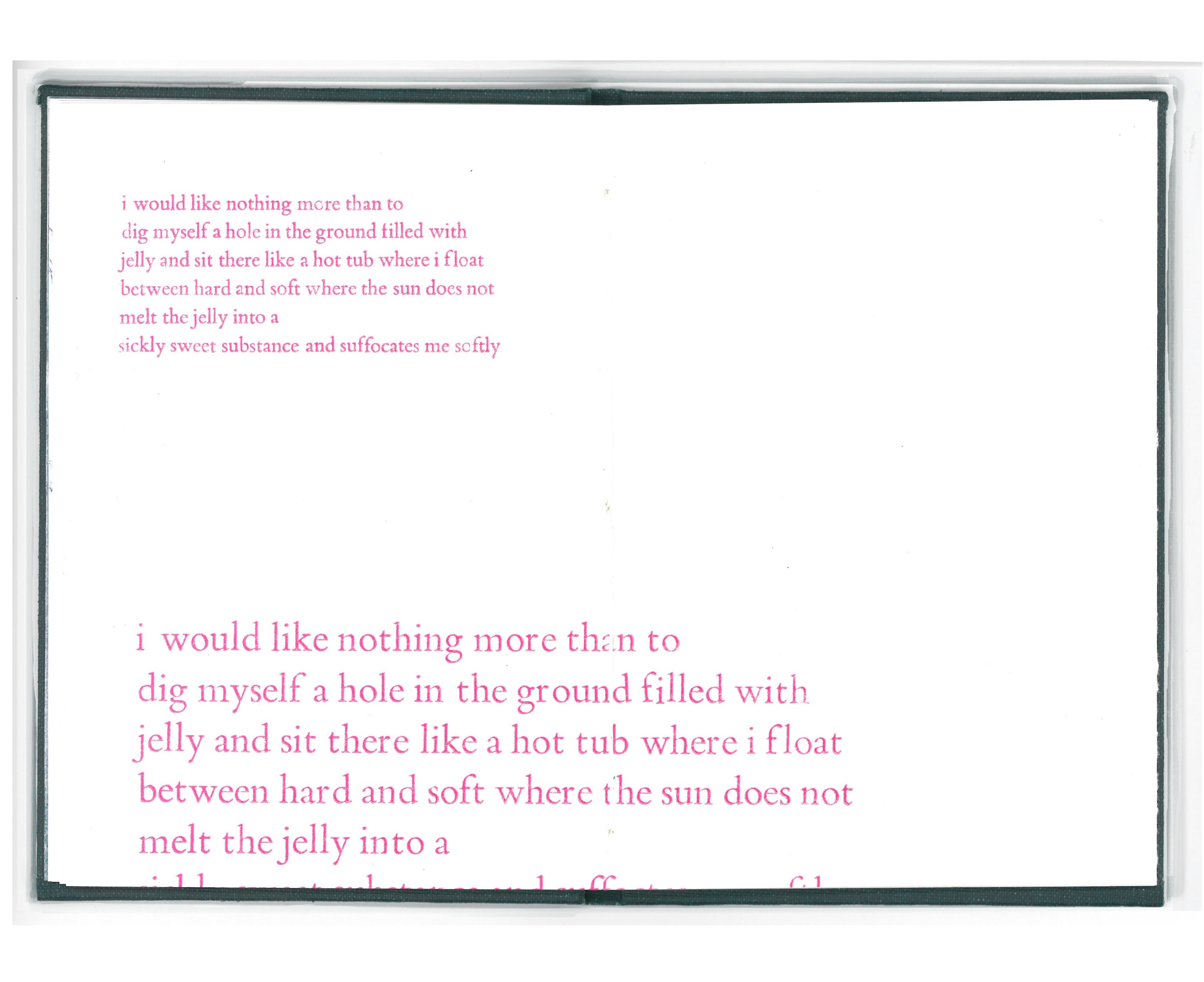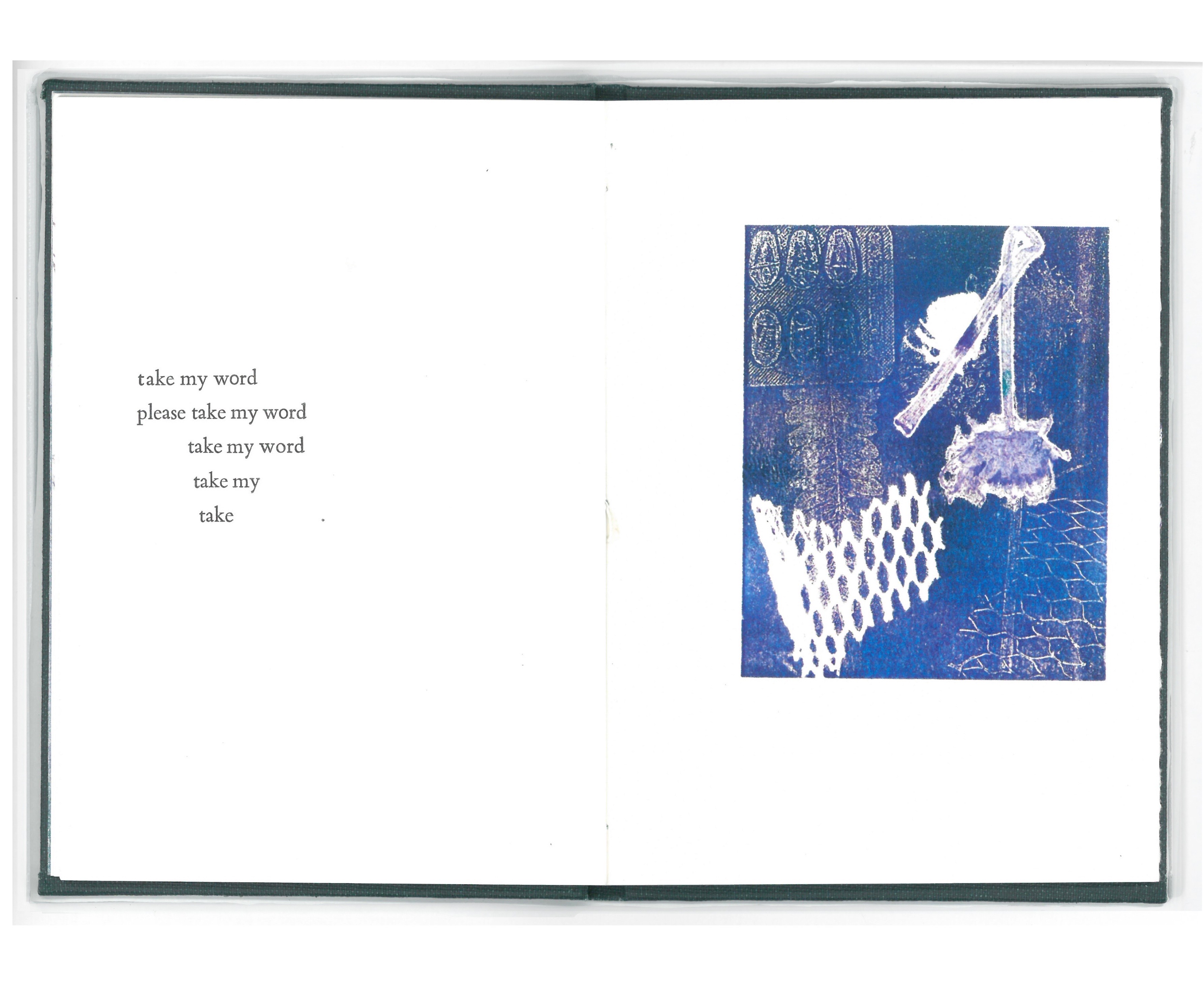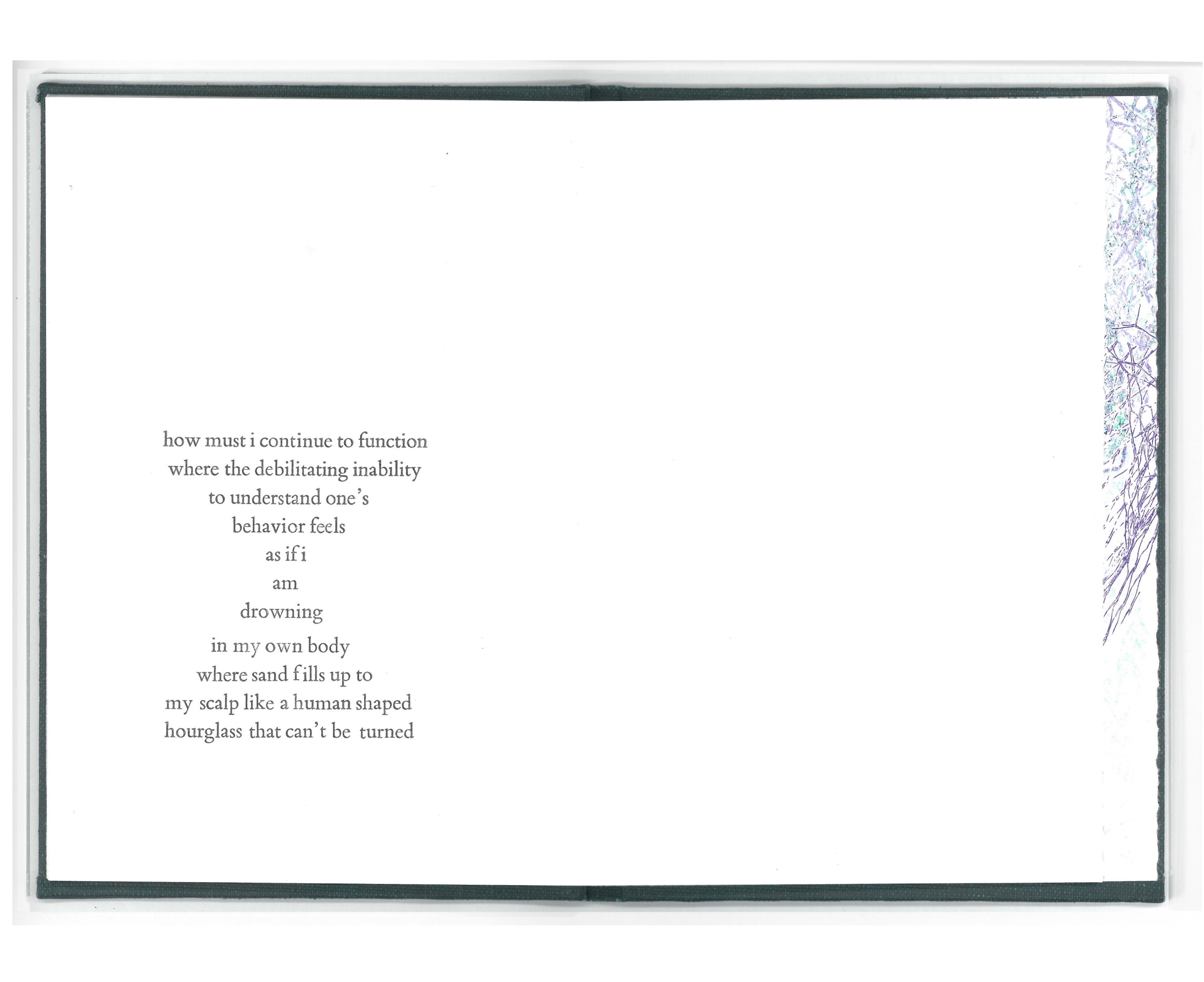 Hand bound book, letterpressed pages, monoprinted end pages